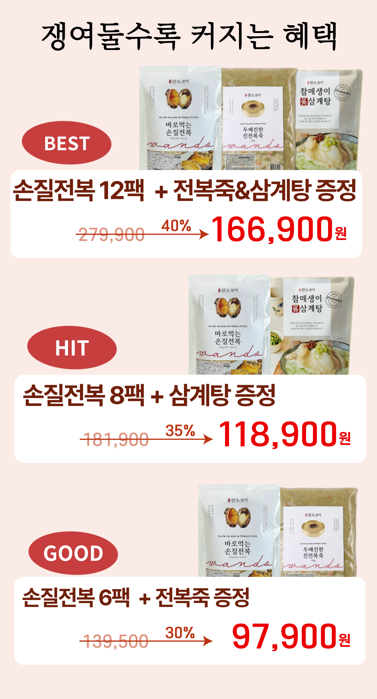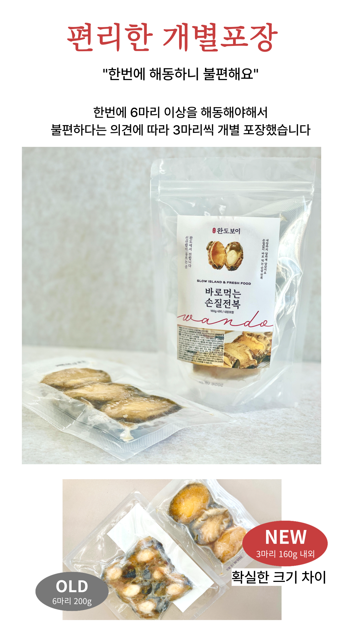 [탐희특가] 완도보이 바로 먹는 손질 전복 (160g내외) 12팩 + 전복죽&삼계탕 증정